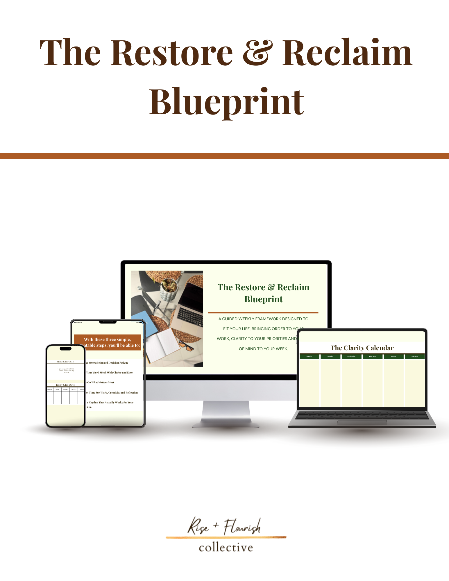 The Restore & Reclaim Blueprint is a guided weekly framework designed to work with your real life. It was created for entrepreneurs, business owners, creatives, content creators and side hustlers who are tired of feeling stretched thin and craving clarity in their work.